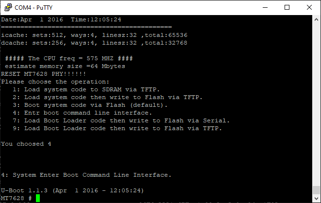 U-Boot 1.1.3 (Apr 1 2016 - 12:05:24)